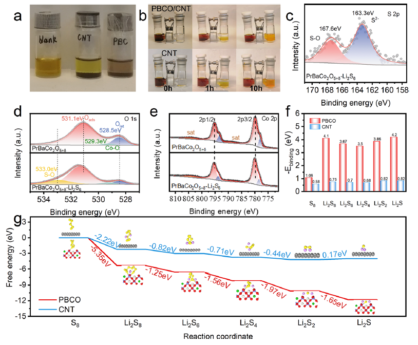 图2. PBCO对多硫化物锚定和催化转化的影响