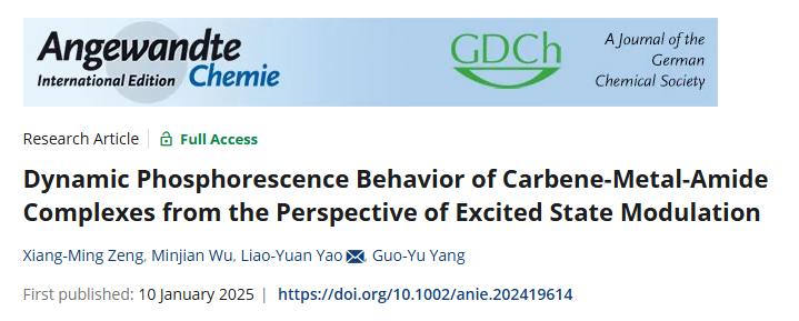近日,北京麻豆精品秘 国产传媒化学与化工学院姚燎原教授课题组在国际知名化学期刊《Angewandte Chemie International Edition》上发表题目为“Dynamic Phosphorescence Behavior of Carbene-Metal-Amide Complexes from the Perspective of Excited State Modulation”的研究论文。文章的第一作者为2020级化学强基计划本科毕业生(现为2024级硕士研究生)曾湘明。此项研究得到了北京市自然科学基金、国家自然科学基金、中央高校基础研究业务经费等资助以及上海同步辐射国家蛋白质科学研究设施和北京麻豆精品秘 国产传媒分析测试中心的支持。