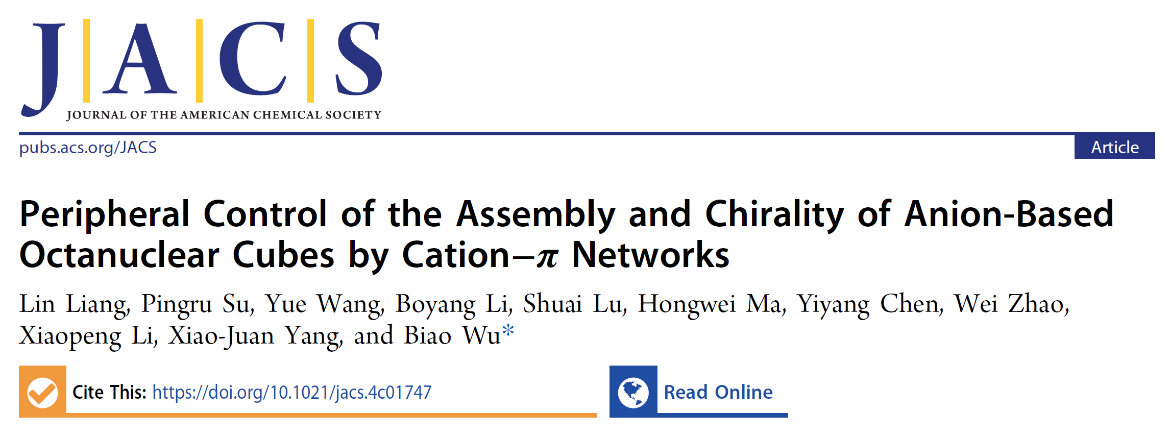 北理工团队在外围阳离子−π网络控制的阴离子配位八核立方体组装与手征性方面取得重要进展