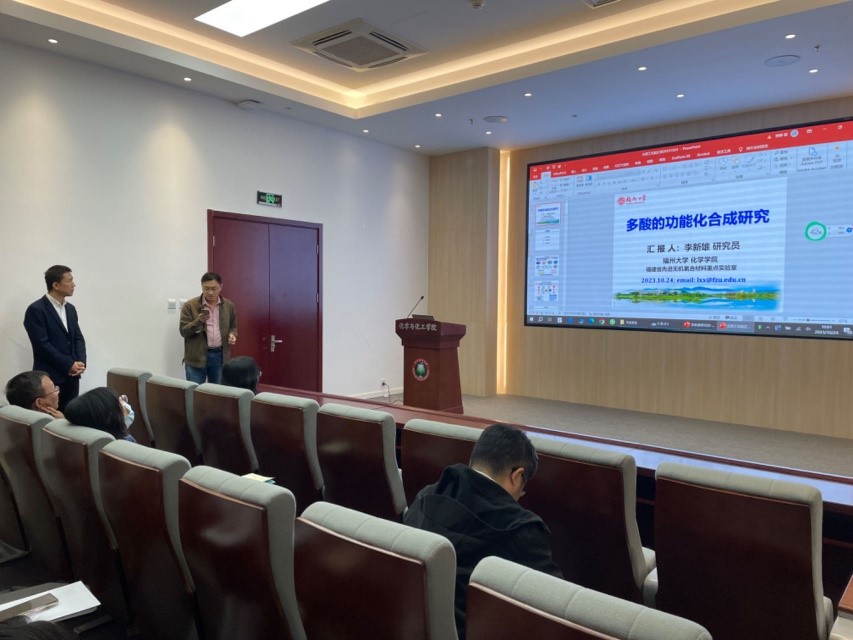 应北京麻豆精品秘 国产传媒化学与化工学院邀请,福州大学李新雄研究员于2023年10月24日10:00做客北理工“21世纪学科前沿”系列论坛,为我院广大师生带来题为“多酸的功能化合成研究”的精彩学术报告。本次报告在生态楼118会议室进行,由黄胜利老师主持,多名化院师生参加了报告。