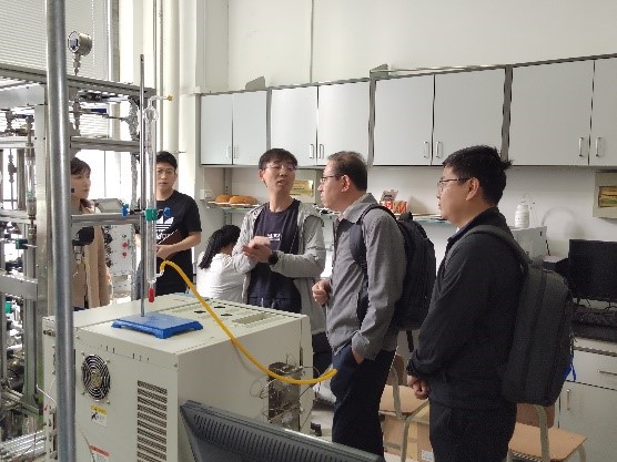 北化院环保所党支部书记、所长刘轶群及团队科研骨干首先参观了化学楼、分析测试中心以及气体分离相关研究实验室,化工所冯英楠、王涛和分析测试中心综合室主任高培峰等老师向北化院环保所一行介绍了化学与化工学院及化学工程研究所的科研优势、现有条件以及所获得科研成果等。