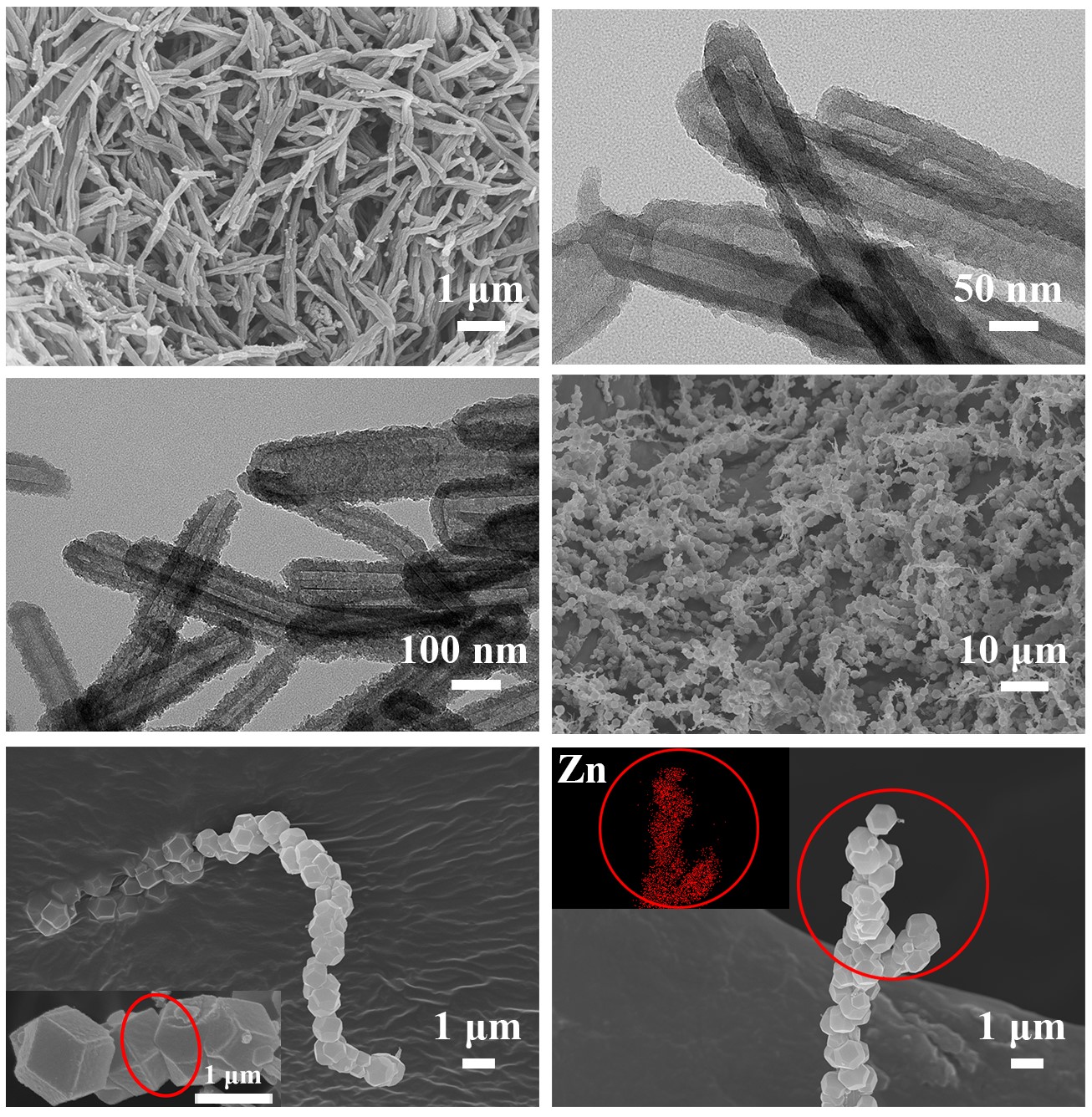 受到珍珠项链的启发,“MOF男孩”设计制作了一条新颖的“MOF项链”作为礼物送给自己心仪的女孩。团队首先以甲基橙为模板,制备了聚吡咯纳米管(PPy nanotube),之后诱导ZIF-8在PPy nanotube外壁成核生长,得到一种具有特殊“项链状”高度连续MOF结构(ZIF-8@PPy),ZIF-8晶体粒子晶面窗孔“对接”形成相对连续分子通道,PPy nanotube在穿引MOF晶体颗粒的同时为客体分子提供了管内连续的快速扩散通道。进而,研究者将这种新颖的“MOF项链”引入到聚二甲基硅氧烷(PDMS)中,制备出了一种高性能混合基质膜。通过膜材料自由体积测定,结合分子动力学模拟,解析了客体分子在膜内的五种分子传递通道(图2)的溶解-扩散行为。有趣的是,ZIF-8和PPy nanotube界面处所组成的“小世界”(“Small World”),在不改变ZIF-8固有结构的情况上,能有效抑制水分子的连续传递,从而提高了膜对丁醇分子的渗透选择性。