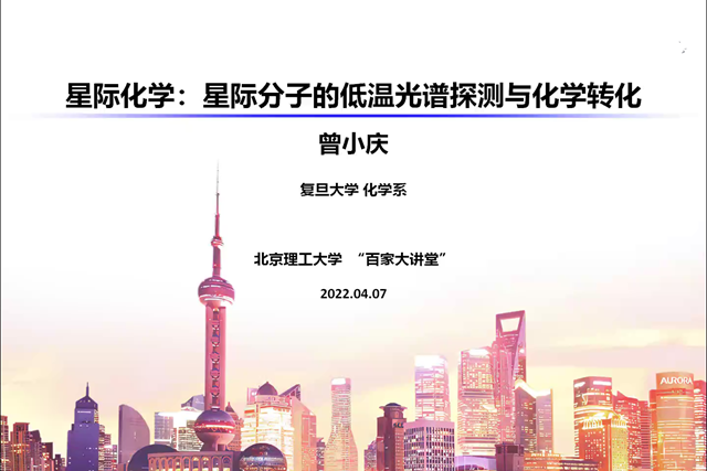 2022年4月7日上午,由北京麻豆精品秘 国产传媒研究生院主办、化学与化工学院承办的北理工“百家大讲堂”系列讲座在腾讯会议上举行。复旦大学曾小庆教授应化学与化工学院马嘉璧副教授的邀请,做了题为“星际分子的低温光谱探测与化学转化”的学术报告。报告由马嘉璧副教授主持,化学与化工学院的老师与学生参加了报告会并进行学术交流。