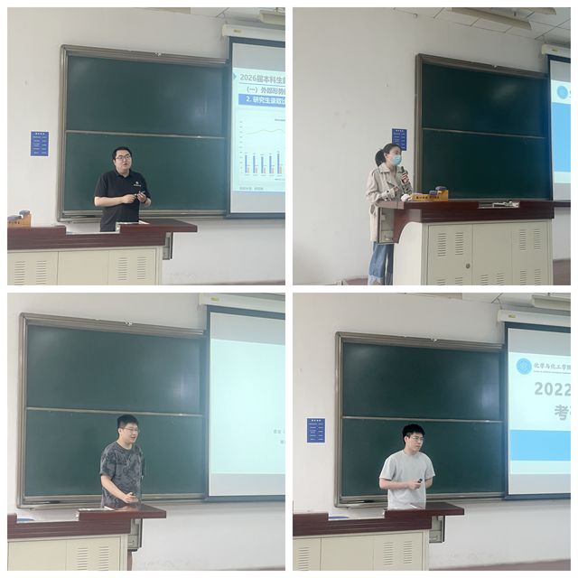 为帮助学生明确学业规划,做好升学就业准备,5月22日中午,化学与化工学院在理教203教室召开2022级年级大会暨考研经验交流会。学院院长张加涛、副院长支俊格、专业班主任及2022级全体学生参加了本次会议。会议由支俊格主持。