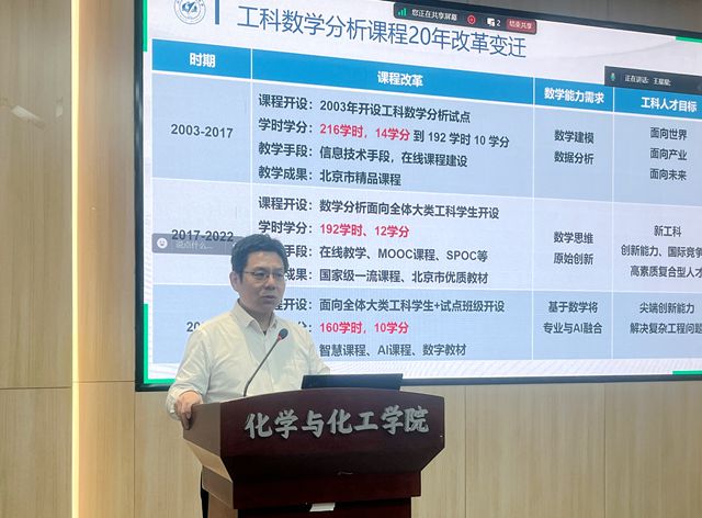 2025年3月5日下午,化学与化工学院依托名师工作坊组织开展AI赋能教育教学研讨会,邀请北京航空航天大学高等理工学院副院长孙玉泉教授做题为“AI赋能公共数学课程的教学探索与实践”的专题报告。学院教学副院长黎汉生、北京市教学名师李晖、教学团队负责人、骨干教师及智慧树网工作人员等参加了本次教学研讨活动。会议由李晖教授主持。
