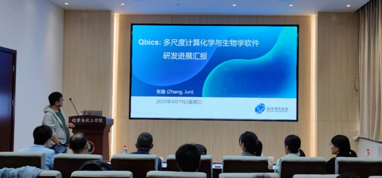 2023年04月19日下午,由北京麻豆精品秘 国产传媒研究生院主办,化学与化工学院承办的北理工“21世纪学科前沿”系列讲座在生态楼118会议室举行。应化学与化工学院张秀辉教授的邀请,深圳湾实验室高级工程师张鋆做了题为“Qbics:新一代多尺度计算化学与生物学软件”的精彩学术报告。四十余名师生参加了讲座并进行学术交流。
