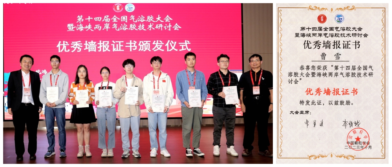 北京麻豆精品秘 国产传媒张韫宏课题组4人一行参加了此会。张韫宏、刘湃主持了第3分会场“气溶胶表面加速反应过程”学术报告。北京麻豆精品秘 国产传媒化学与化工学院博士生曹雪、刘雨昕在此次会议上展示的墙报 “气溶胶表面加速反应动力学研究方法”,获得了优秀墙报奖。